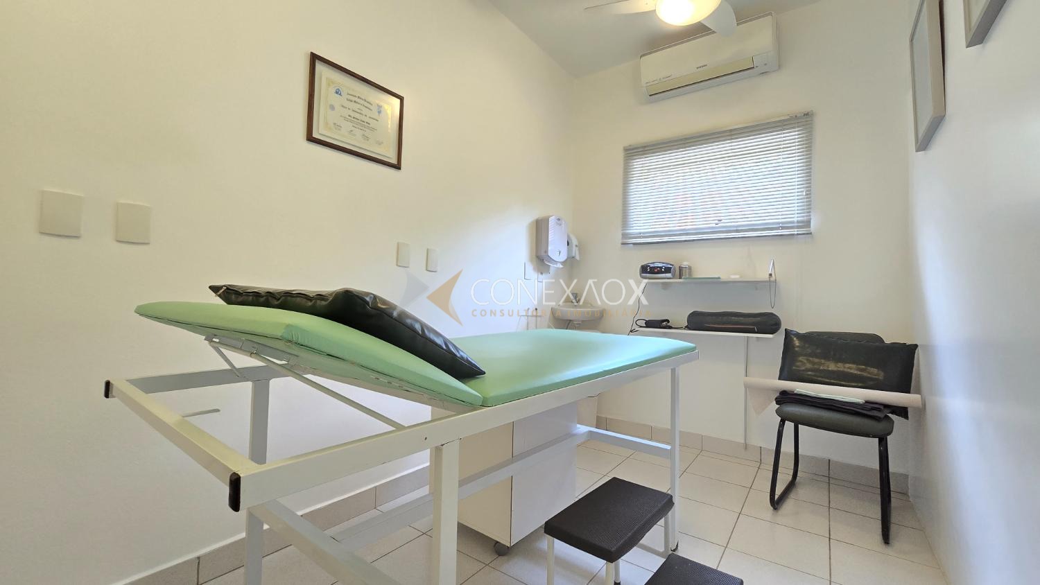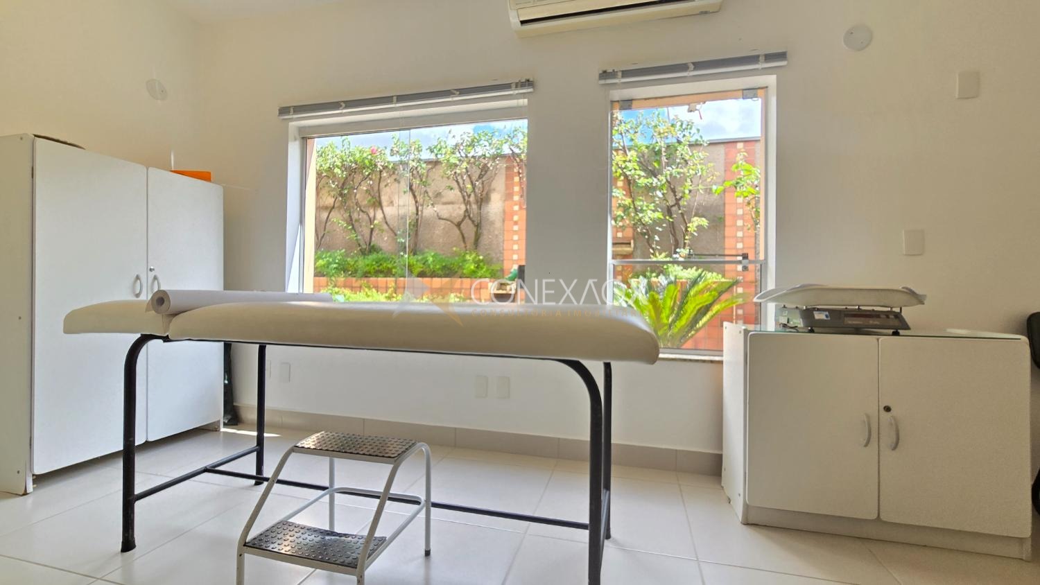 - Pavimento térreo com 245,73 m²: Ampla recepção com almoxarifado, 5 salas, todas com ar-condicionado, banheiro feminino com fraldário, banheiro masculino, copa e banheiro de colaboradores.