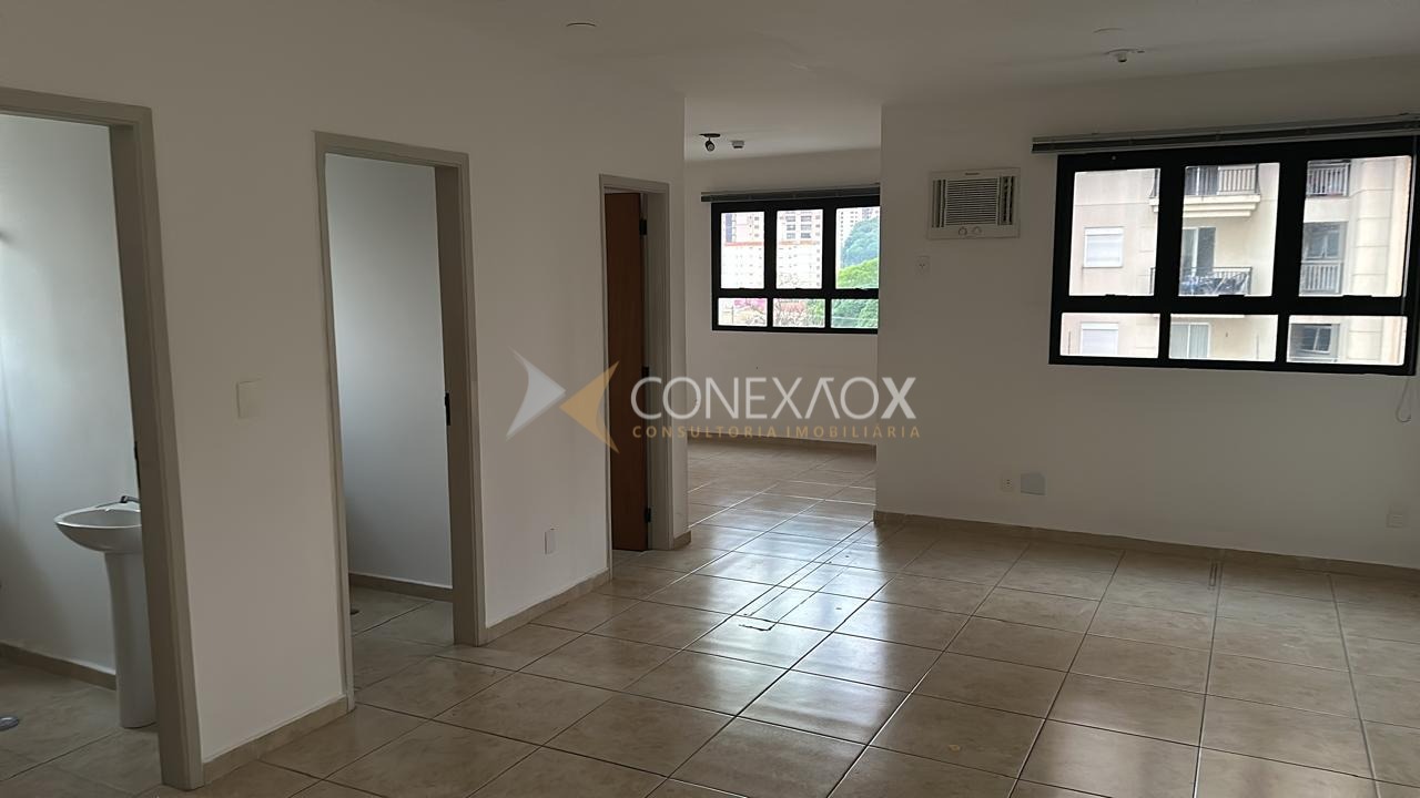 Sala comercial para locação. bairro Guanabara em Campinas. Excelente localização, paralela à Avenida Barão de Itapura, atrás do Hospital Renascença, prédio bem cuidado, com portaria e 2 elevadores. Conjunto de salas contendo 53m² de área útil, dividida em sala de espera, recepção, 2 salas para atendimento com ar condicionado, 2 banheiros e pequena copa. Possui 2 vagas de garagem no subsolo.