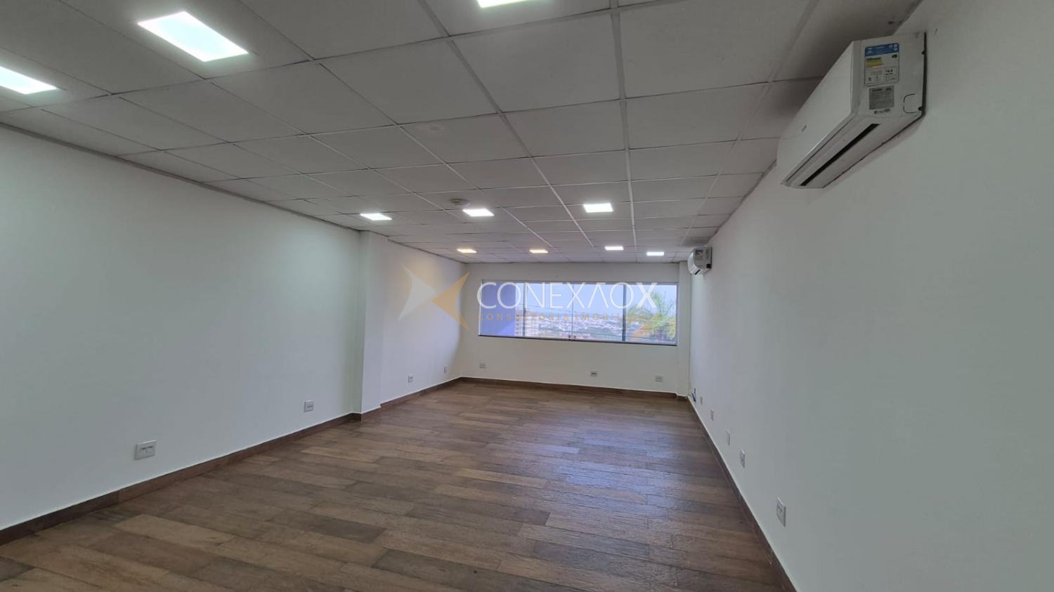 O ambiente possui piso em porcelanato, proporcionando um visual moderno e sofisticado. Além disso, a sala está apta para locação imediata para quem busca um espaço pronto para uso.