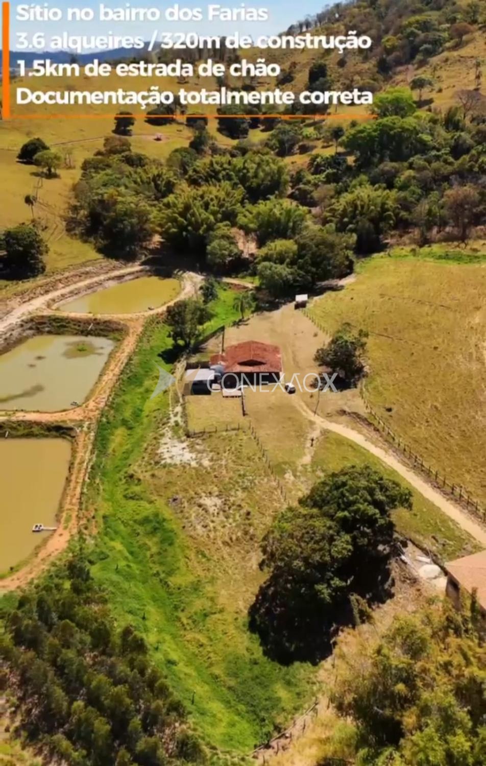 sitio com 3,6 Alqueires de terreno e 320mt² de construção.